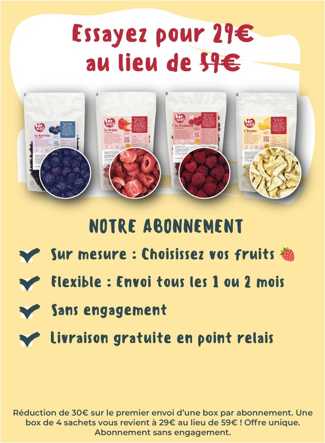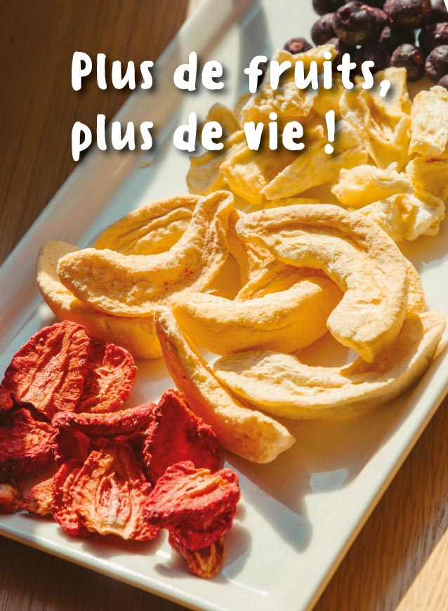 Nos fruits lyophilisés sont gourmands, sans sucre ajouté, et incroyablement pratiques : au petit déjeuner dans des céréales, au dessert dans un fromage blanc, pour votre pause goûter, un geste suffit pour ajouter couleurs et vitamines à votre quotidien.Prêts à croquer les fruits dont raffolent les petits comme les grands ?