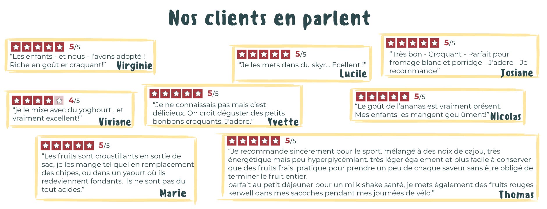 Et c'est pour vous aider à mettre plus de fruit dans le quotidien que nous avons opté pour un service basé sur l’abonnement. Grâce à la régularité des livraisons, vous faites rentrer les fruits lyophilisés dans votre routine, et mangez tout naturellement plus de fruit. Idéal pour contribuer au bien-être de chacun !