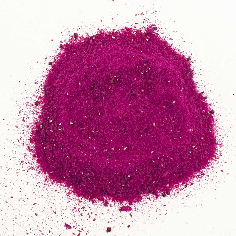 Le fruit du dragon frais a un goût fin et légèrement sucré, qui évoque un mélange de melon blanc et de kiwi. En version lyophilisée et réduite en poudre, sa saveur est plus concentrée, et sa couleur rose vif rend chaque préparation spectaculaire 🤩